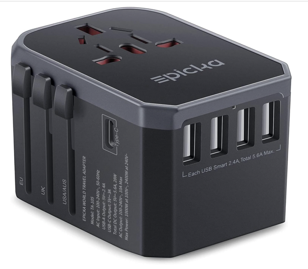 If you travel with multiple devices, look for an adapter that includes USB and USB-C ports so you can charge everything at once. It saves time, reduces clutter, and keeps your carry on organized instead of chaotic.